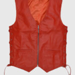Add a pop of bold style to your persona with this stunning men’s red laced vest, crafted from premium sheepskin leather for a luxurious and durable finish. This vest combines timeless design with a modern edge, featuring a zipper front closure and a V-neckline. The soft polyester lining ensures all-day comfort, while the side lace-up detailing adds a bold, eye-catching touch. This vibrant red vest is a must-have for any wardrobe, perfect for layering over a tee or shirt.