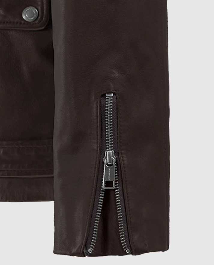 Look sharp and stylish with the men’s dauntless leather jacket, a premium piece designed for bike enthusiasts who value both style and functionality. Crafted from high-quality sheepskin leather with a soft viscose lining, this jacket ensures comfort and durability on every ride. It features a front zip closure, a stylish wide lapel style collar, and a brown-black color that exudes sophistication. This jacket is perfect for turning heads, whether you are hitting the road or stepping out in style. Pair it with your favorite jeans and boots for an effortlessly cool and confident look.