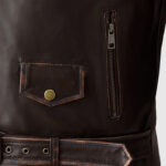 Introducing the classic enforcer dark brown biker leather jacket, a timeless piece that combines style, comfort, and functionality. This jacket is designed to give you a dashing appearance while ensuring durability. The inner lining is soft, high-quality fabric, providing a warm and cozy feel throughout the day. Moreover, the jacket features a stylish collar that adds to its charm. It also has an asymmetrical front zipper closure and a unique wide lapel-style collar for a bold, sophisticated look. The soft viscose lining enhances comfort, making it perfect for all-day wear. So, why wait to elevate your style and make a statement with this exceptional piece of outerwear.