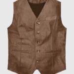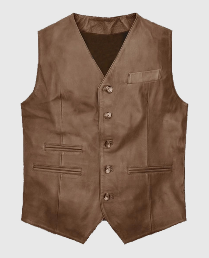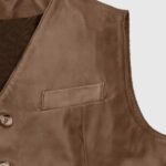 This iron stride vintage-inspired vest combines timeless elegance with rugged appeal. Crafted from sheepskin leather, it features a V-neckline, button closure, and four external pockets, providing a refined yet functional design. The lightweight interior ensures a comfortable fit, making it easy to wear all day. Its vintage-inspired minimalist look with matching buttons makes it a versatile layering piece over a crisp shirt or casual tee. Whether you’re dressing up for a smart-casual occasion or adding a Western touch to your outfit, this vest is a must-have for a polished and confident look.