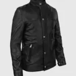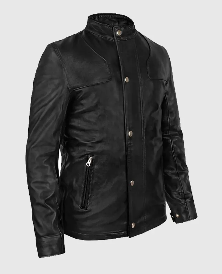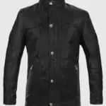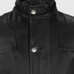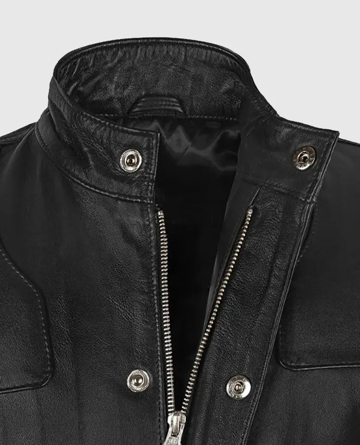 Elevate your style with the bold and structured appeal of the men’s black military command jacket. Drawing inspiration from modern military gear, this jacket has a zipper-over-button closure for a secure fit and a stand-up collar that adds a commanding presence. The long sleeves with button cuffs bring a refined touch, while the two outer and interior pockets offer both function and convenience. Its sleek black finish makes it a standout piece among other leather jackets.
