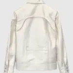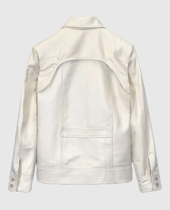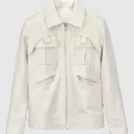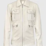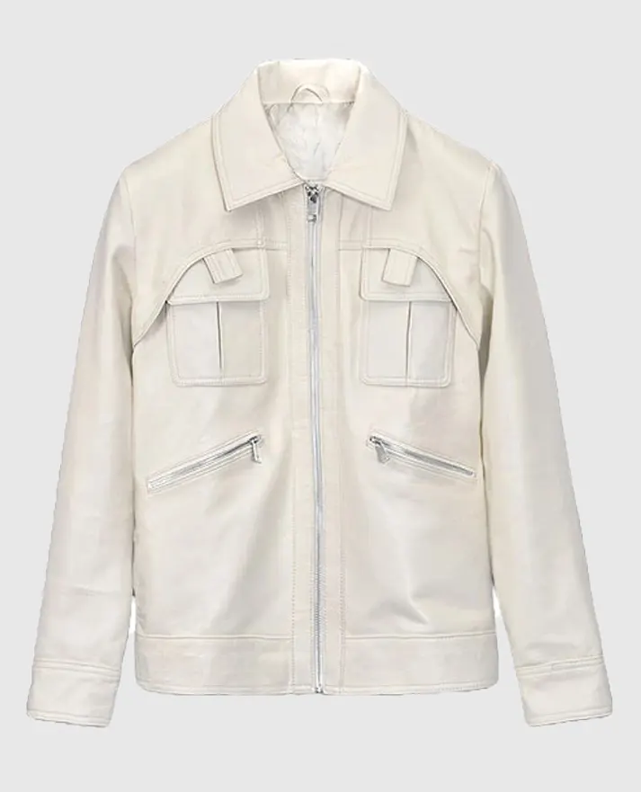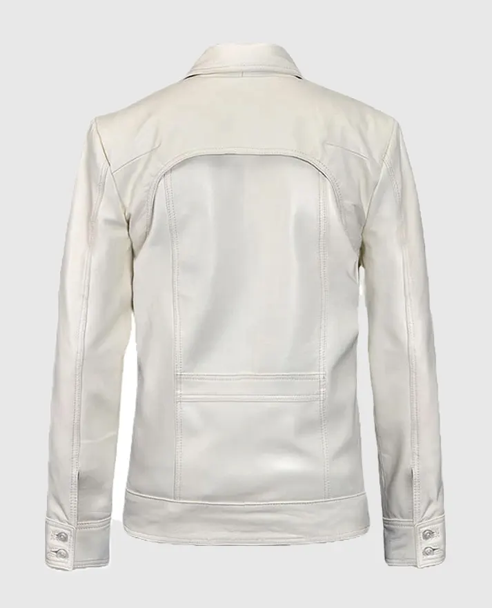 Shirt Collared White Motorcycle Leather Jacket for Men