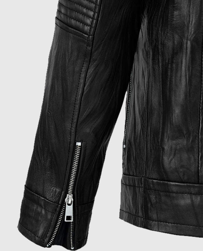 Embrace the bold style of Tom Cruise from Mission Impossible Ghost Protocol with this hooded leather jacket. Crafted from premium pure sheepskin leather and lined with soft viscose for comfort. The men’s leather jacket with leather hood features a practical zipper front closure, full-length sleeves with zipper cuffs, and three secure external pockets. The classic black color and minimalist design make it a versatile piece for everyday wear. Perfect for fans of the Mission Impossible franchise and those seeking a modern, functional leather jacket.