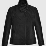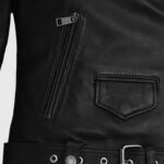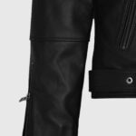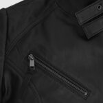 Get a sturdy, cool and effortlessly versatile look with this black leather jacket inspired by Natalie Portman’s bold fashion moment in the 2018 drama film Vox Lux, where she portrayed the fierce and unforgettable Celeste Montgomery. Crafted from premium sheepskin leather, it features an asymmetrical zipper closure, wide lapel collar, and full-length sleeves with zipper cuffs, delivering a classic biker vibe with a modern twist. The sleek black finish and stylish side zipper pockets elevate its sharp silhouette. Pair it with leather pants or ripped jeans to mirror Celeste’s fearless stage presence in your everyday style.