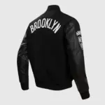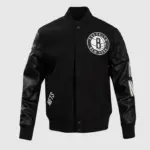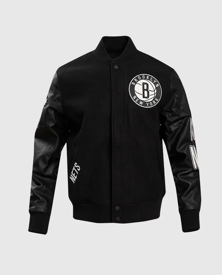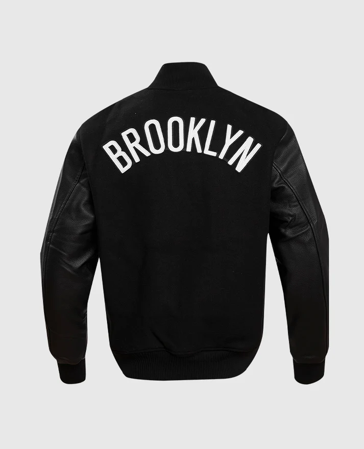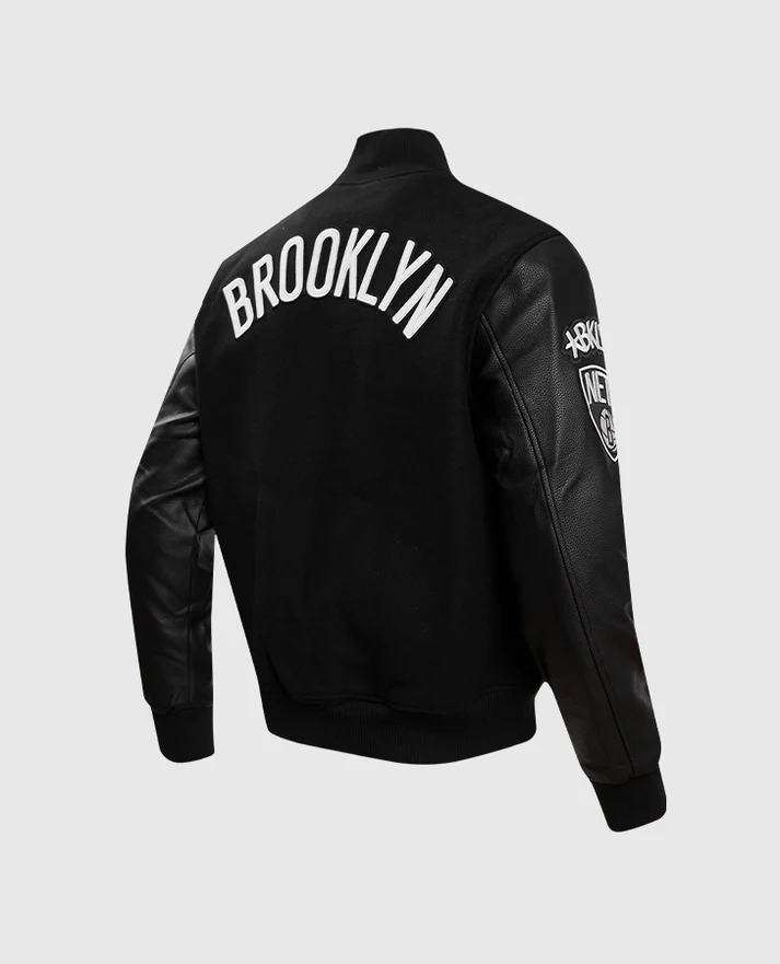 Celebrate Your Fandom In Men’s Black NBA Brooklyn Nets Varsity Jacket