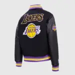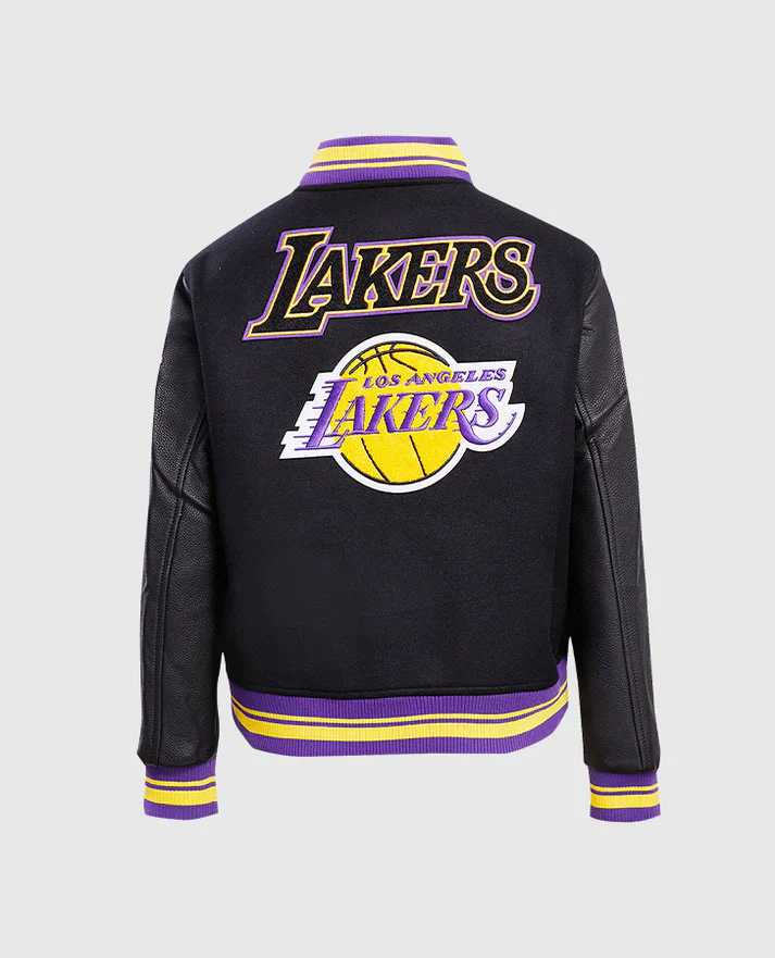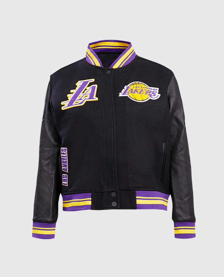 The NBA Los Angeles Lakers women’s varsity jacket at the Genuine Jacket Store enables trend-driven divas to stay fashionable forever. This wardrobe staple features the timeless tone of black, and the striped design in yellow and purple at the edges exudes chicness. It is the signature piece of the NBA team Los Angeles Lakes, whose fashion is most demanded and followed by celebrities and fashion icons. Besides, its never-ending resilience and unparalleled practicality ensure your wearing satisfaction in the best possible manner.