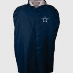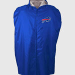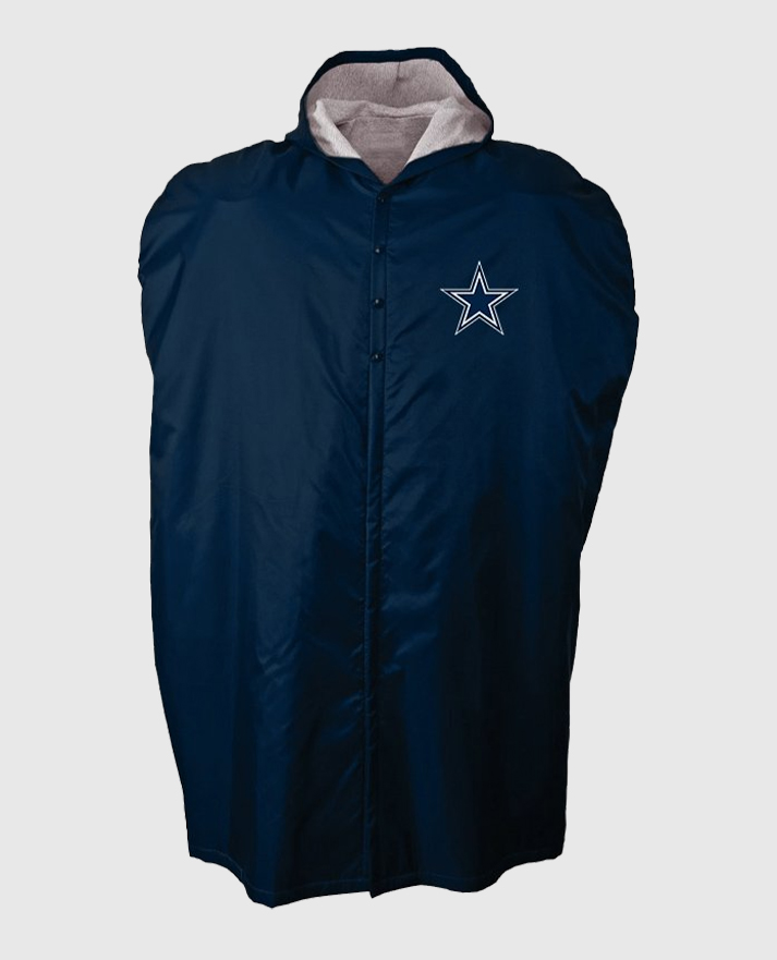 The cape coat is a sideline outerwear worn by NFL players and coaches to stay warm while commanding the field. It is designed for maximum coverage and protection. Crafted from durable nylon fabric with a soft fleece lining. Features a snap-tab button closure, a hooded collar for extra protection, and two internal pockets. The bold blue color makes it a versatile layering piece for game days and outdoor activities. This men’s nfl cape coat is a must-have for sports enthusiasts and trendsetters alike.