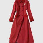 The Princess Kate Middleton Red Coat is a sophisticated and elegant outerwear piece inspired by the look of royal fashion icon Catherine, Princess of Wales. This red coat is made from premium wool and complemented by a soft viscose lining for a cozy feel. The double-breasted button closure and turn-down pointed collar add a touch of timeless grace, while the full-length sleeves with round cuffs ensure a polished look. Designed with two outer flap pockets. The striking red color makes this red kate coat a statement piece. Perfect for high-end occasions such as weddings, formal dinners, or Christmas gatherings with heels and statement jewelry.