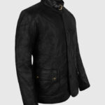 Step into the ring of style with this leather jacket, inspired by Hugh Jackman’s iconic look in Real Steel as Charlie Kenton. Designed to boost your confidence and elevate your look, this jacket is made up of sheepskin leather. The soft viscose lining inside the part ensures comfort and warmth, while the button closure and stand-up collar add a masculine edge. Moreover, the timeless black color of the jacket makes it a versatile piece for any occasion.