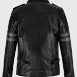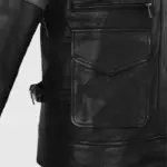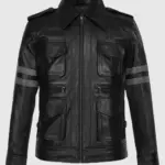 This marvellous biker leather jacket is inspired by the “Resident Evil 6” shooter video game.  It was an action and adventure video game that captured gamers’ interest. Leon Kennedy’s character hooks the players from start to end due to their actions and sense of dress, and the jacket mentioned is one of them. It is a creation of sheepskin leather, which is long-lasting due to its superior quality. The shirt-style collar of the jacket suits you very well. The outerwear features two side zip pockets. The jacket’s mesmerising black colour highlights your unique identity. It also comes with shoulder straps. Double grey stripes are added to both sleeves, which look pleasant and gorgeous.