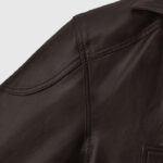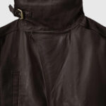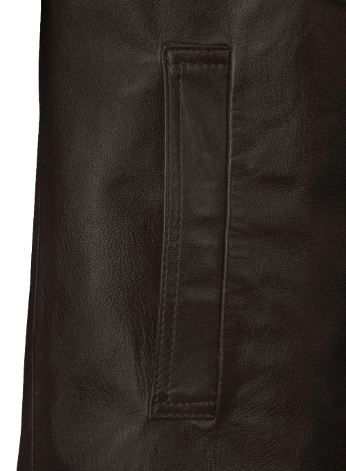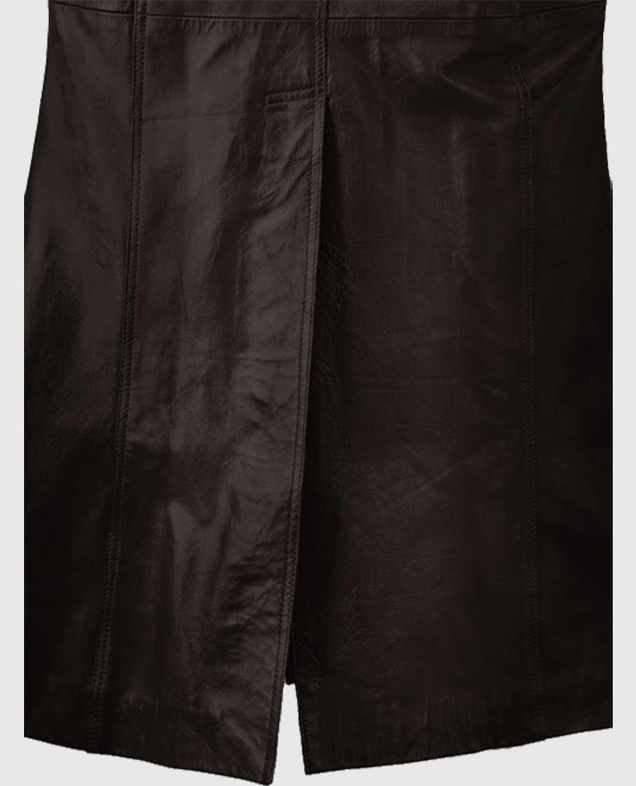 Stay warm and stylish with the Officer K dark brown leather coat, inspired by Ryan Gosling’s iconic look. Made from premium sheepskin leather, this coat is durable and sophisticated, perfect for any occasion. The soft faux fur lining provides warmth and comfort, making it ideal for colder weather. It is designed with a notch lapel collar and belt and adds a sleek and structured touch. The buttoned front closure, full-length sleeves with round cuffs, and three practical pockets offer both style and convenience. In a rich dark brown color, this coat is a versatile wardrobe staple that brings effortless elegance to any outfit.