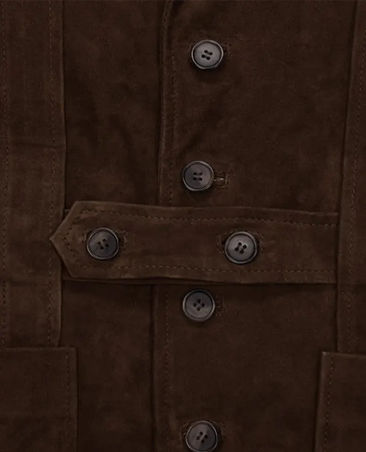 This season, be ready to step out with a bold style and a confident attitude with this jaw-dropping Safari Dune Suede Leather Blazer that we bring to you to keep rocking your wardrobe. The outer shell of the jacket is made from premium suede leather. Moreover, soft viscose lining inside the jacket keeps you warm and comfy all day long. The button-over-belt style adds a unique touch. Lapel-style collar gives a classic look while full-length sleeves with open hem cuffs offer a modern finish.