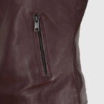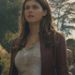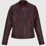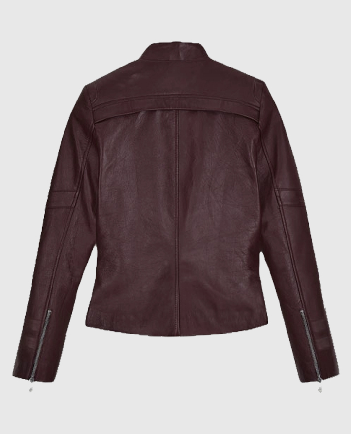 Inspired by Alexandra Daddario’s bold on-screen presence, this leather jacket brings a cinematic edge to real-life fashion. Worn by the actress in the action-packed film San Andreas as Blake. This cafe racer-style jacket is crafted from premium sheepskin leather in a rich burgundy color for a standout look. It features a front zipper closure, snap-tab button collar, and full-length sleeves with zipper cuffs, blending sleek lines with rugged flair. The soft viscose lining ensures comfort with every wear, making it stylish and practical. Whether you’re heading out for a ride or a casual outing, this jacket adds a fearless finish to any outfit.