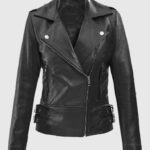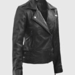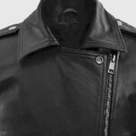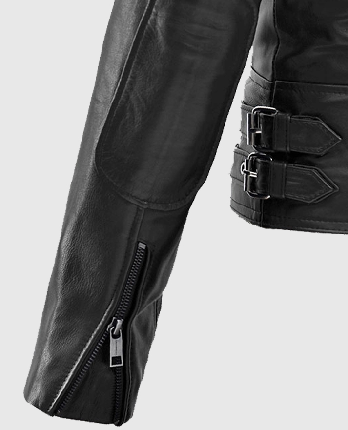 Lethal style meets unstoppable grace in this sleek black leather jacket inspired by Scarlett Johansson’s role as Black Widow in the Marvel Cinematic Universe. Made from supple sheepskin leather and lined with soft viscose, it features a sharp asymmetrical zip closure and wide notch lapels that exude confidence. The side zipper pockets and waist belt buckle accents give it a tactical edge, while the form-flattering fit keeps it sleek and striking. Pair it with leather pants and heeled boots for a head-to-toe assassin-chic look.