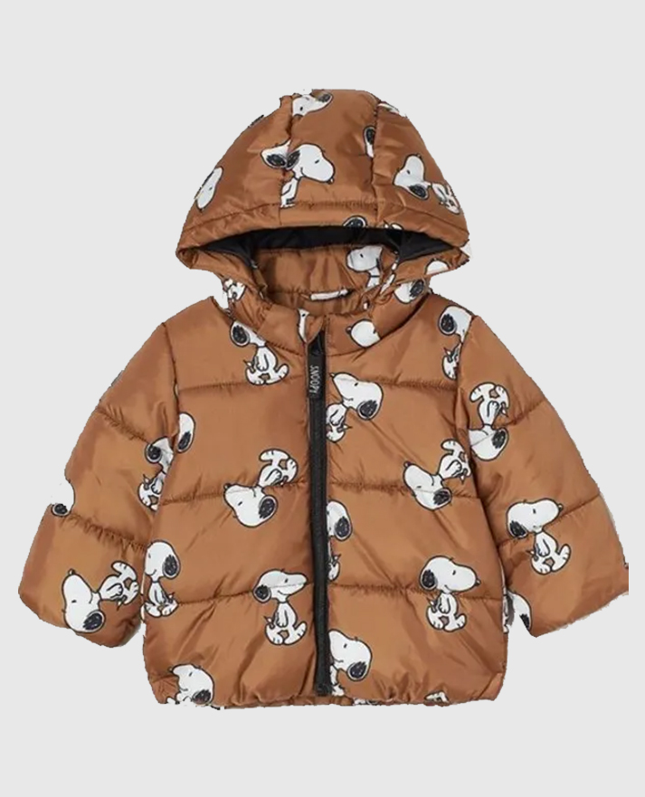 This cozy and stylish brown puffer jacket is designed for ultimate warmth and inspired by the popular cartoon Snoopy . Made from premium parachute fabric and viscose lining offers excellent insulation while remaining lightweight. Featuring a front zipper closure and a hooded collar, full-length sleeves with open hem cuffs enhance its relaxed fit, while two spacious waist pockets offer practicality. The adorable Snoopy print on a brown base adds a fun and nostalgic vibe, making it a must-have for Peanuts fans. Ideal for casual outings, winter strolls, or layering up in style!