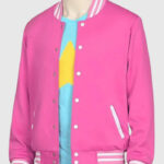 Embrace the vibrant and adventurous spirit of Steven Universe with this iconic Pink Varsity Jacket, inspired by the American animated cartoon series Steven Universe. Crafted from high-quality fleece, it offers a soft and comfortable feel. The rib-knitted collar, cuffs, and hemline enhance the classic varsity look, while the button-up front adds a retro touch. Featuring a bold pink hue with white striped details, this jacket brings a fun and energetic aesthetic to your wardrobe. The two side waist pockets provide functionality, making it both stylish and practical. This varsity jacket is ideal for casual outings, cosplay, or layering in cooler seasons.