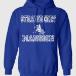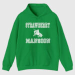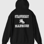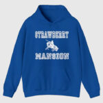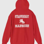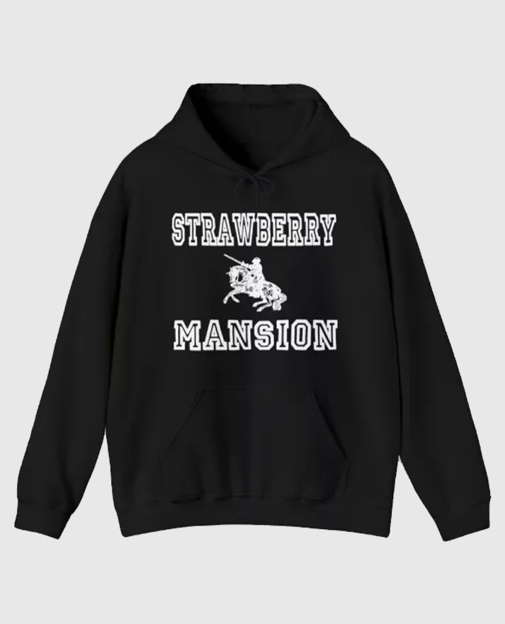 Embrace a blend of comfort and style with the Strawberry Mansion Hoodie. Crafted from high-quality fleece fabric and is perfect for casual wear. The pullover style provides a classic look, complemented by a hooded collar with adjustable drawstrings. Featuring full-length sleeves with rib-knitted cuffs and hemline. A spacious pouch pocket adds functionality, making it ideal for keeping your hands warm or storing essentials. Available in black, blue, green, and red colors and has a cool text on the front. This hoodie is a must-have for those who love effortless streetwear fashion.