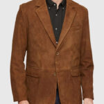 This elegant brown suede leather blazer offers a sophisticated touch to any wardrobe. Crafted from soft suede with a comfortable viscose lining, it features a classic notch lapel, a two-button closure, round cuffs, and three practical external pockets. Perfect for smart-casual events, business meetings. This suede sport coat pairs beautifully with dress pants and a collared shirt for a formal look, or dark jeans and a sweater for a more relaxed yet polished ensemble.