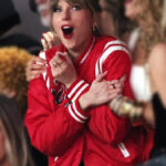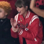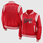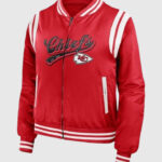 Show your team spirit in style with the Super Bowl LVIII Taylor Swift Jacket. Taylor Swift wore this Kansas City Chiefs jacket during Super Bowl LVIII while supporting her boyfriend, Travis Kelce. We made the same replica jacket from high-quality satin fabric with soft viscose lining. The rib-knitted collar, cuffs, and hemline add a sporty touch, while the zippered front closure ensures a sleek and secure fit. Designed with two outer pockets and one inner pocket, it offers both fashion and functionality. Whether you’re cheering for the Chiefs or looking to channel Taylor Swift’s game-day look, this jacket is a must-have for any fan.