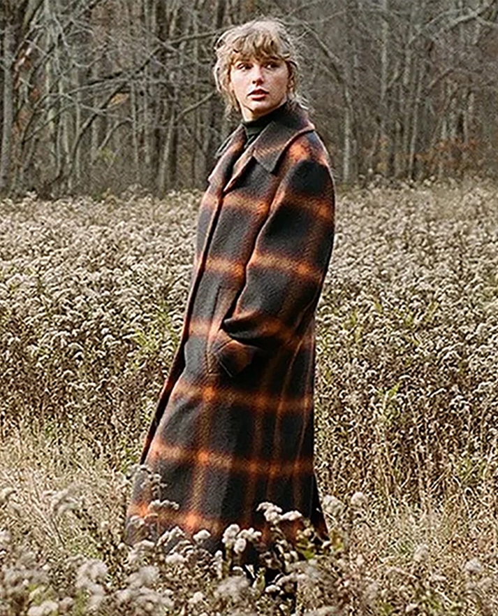 Taylor Swift Evermore Long Dark Brown Checkered Coat