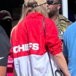 The red and white jacket is a must-have for Swifties and football fans. Her fashion choices have become a standout highlight during the match between the Kansas City Chiefs and the Chicago Bears where she proudly support her rumored boyfriend, Travis Kelce. To give you the same taylor look we made this jacket with a durable cotton-polyester blend and features a stand-up collar, zipper front, ribbed cuffs, and multiple pockets. You can pair taylor swift kc jacket with jeans and sneakers for a sporty look, or wear it over a crop top and leggings for a trendy vibe.