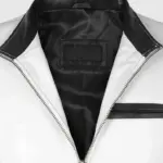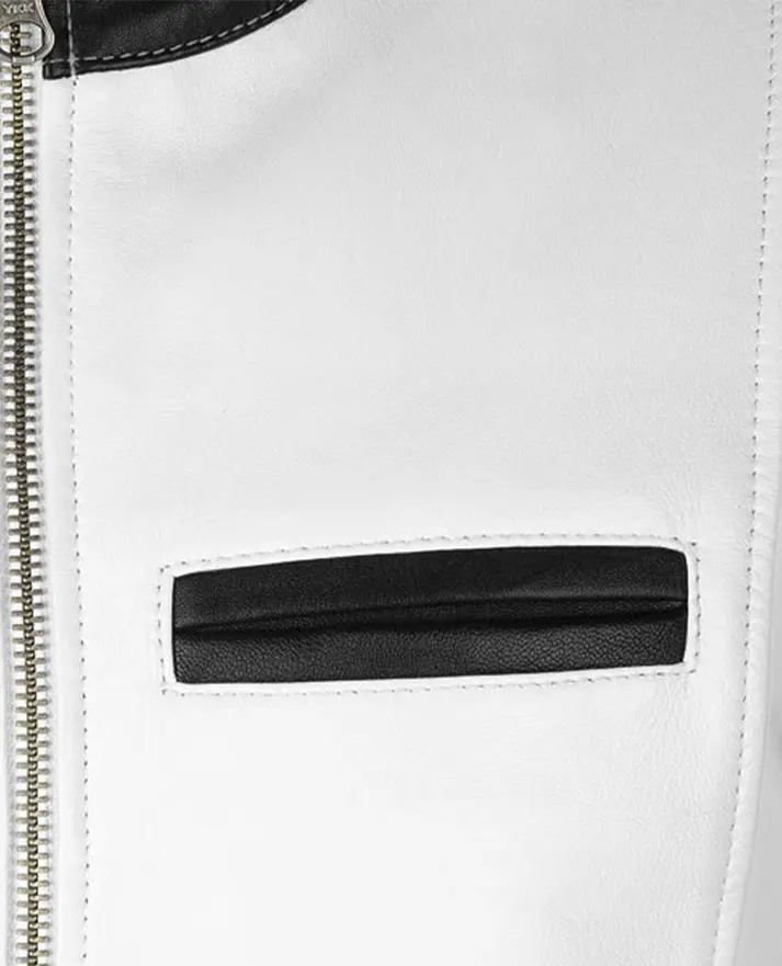 Celebrate Bruce Lee’s legacy with this Classic Leather Jacket, inspired by the iconic martial artist, actor, and global pop culture legend. Born in San Francisco in 1940, Bruce Lee left an indelible mark on the world, and this jacket pays tribute to his timeless style. Made from premium sheepskin leather with a soft viscose lining, this jacket combines durability and comfort. It features a zipper closure, a stand-up collar, and long sleeves with open hem cuffs for a sleek fit. The striking white body, black sleeves, and red-white stripes create a bold, eye-catching design. With two outside pockets, it’s both stylish and functional. Perfect for fans of Bruce Lee or anyone who loves classic, bold fashion, this jacket is a must-have.