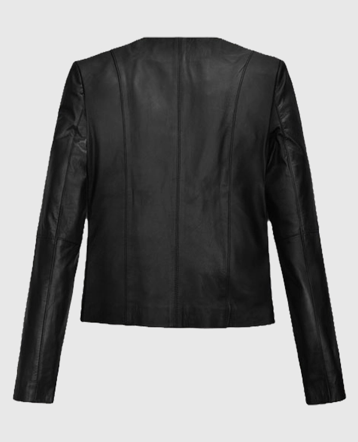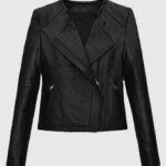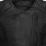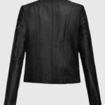 Step into the confident charm of Eleanor Shellstrop with this sleek black leather jacket inspired by Kristen Bell’s look in The Good Place. Crafted from premium sheepskin leather, this stylish piece features an asymmetrical zipper closure, a neat round neck collar, and full-length sleeves with round cuffs for a clean silhouette. The black color adds timeless appeal, while the fitted design brings a modern edge.