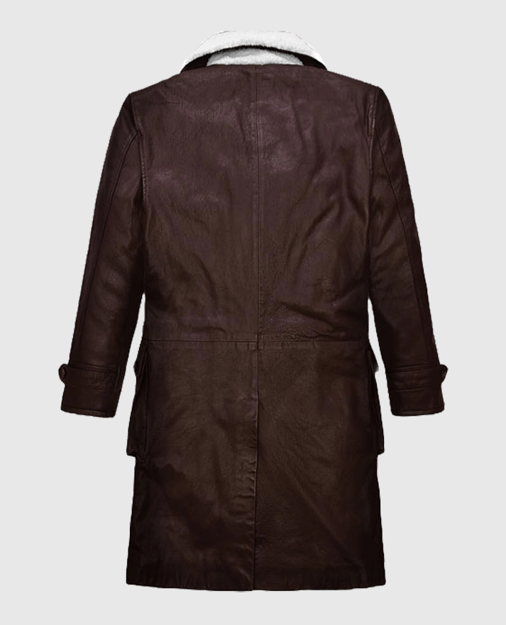Make your personality powerful, and take your style to the next level with this fascinating Tom Hardy The Dark Knight Rises Leather Trench Coat. This fantastic coat is a replica piece inspired by actor Tom Hardy while portraying the badass role of the Bane character in the following movie. The outside part of the jacket is a creation of sheepskin leather. Further, it features a distinctive washed and waxed brown finish, giving it a bold appeal. The button closure and shirt-style fur collar enhance its structure, while the full-length sleeves with button-strap cuffs add a refined touch.