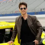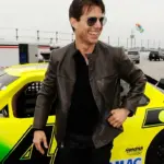 Step into the spotlight with this brown leather jacket, inspired by the Tom Cruise iconic look, during his visit to Daytona Beach, Florida, on February 15. Spotted with his son Connor Antony. Cruise wore this jacket from Days of Thunder while standing in front of the car, exuding timeless style and charm. Crafted from premium sheepskin leather, this jacket offers durability and a luxurious finish, while the soft viscose lining ensures comfort and warmth. It features a zipper closure, a sleek stand-up collar, and long sleeves with button cuffs for a polished look. The two side pockets add practicality, and the Scottish brown makes it a versatile piece that pairs effortlessly with any outfit.