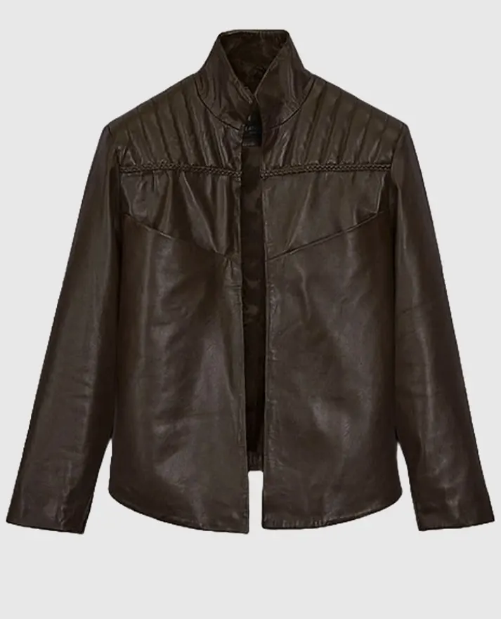 This stylish jacket draws inspiration from the popular television series Da Vinci’s Demons, a historical fantasy show celebrated for its captivating storyline and iconic wardrobe pieces. Among them this front-open style jacket, which perfectly blends historical charm with a modern touch. Crafted from premium sheepskin leather, the jacket features an open front design, a sleek stand-up collar, and long sleeves with open hem cuffs, creating a timeless and sophisticated look. The rich brown colour adds a touch of elegance, making it a versatile piece that pairs effortlessly with any outfit.