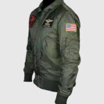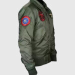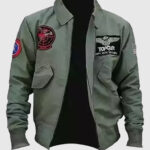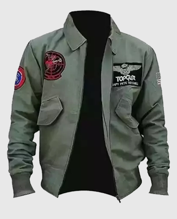 The Top G-1 Flight Bomber Jacket is inspired by Tom Cruise’s iconic portrayal of Captain Pete “Maverick” Mitchell in the legendary action film Top Gun Maverick. This jacket from top gun is crafted from high-quality cotton fabric and features a soft viscose lining, front zipper closure, shirt-style collar, full-length sleeves with rib-knitted cuffs and hemline. The jacket from top gun includes two outer pockets for convenience. The rich green color and multiple U.S. Navy patches further enhances its rugged appeal. It is a must-have for fans of aviation and classic bomber jackets.