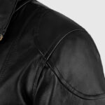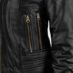 Turn up the heat with this figure-hugging black leather jacket, inspired by Megan Fox’s smoldering screen presence as Mikaela in the action film Transformers: Revenge of the Fallen. Crafted from pure sheepskin leather and lined with soft viscose. Vertical seam lines and quilted paneling at the cuffs and waist create a sculpted silhouette, while four sleek zipper pockets add utility and style. The gold-toned zipper closure and stand-up collar complete the look. Perfect for date nights, after-dark events, car meets, or any time you want to channel that signature Megan Fox magnetism.