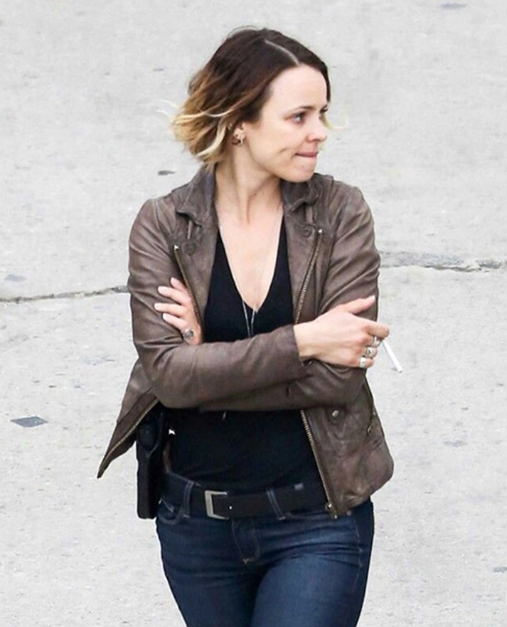 Step into the shoes of a brilliant detective with this bold and stylish leather jacket. Inspired by Rachel McAdams’ character, Ani Bezzerides, from the crime drama True Detective. This piece blends functionality with a strong, confident vibe as it is made from premium sheepskin leather; it features a zipper front closure, lapel collar, full-length sleeves with zipper cuffs, and a standout Scottish brown color that adds depth to your outfit. Designed with a soft viscose lining, it keeps you comfortable whether on the move or off duty.