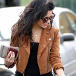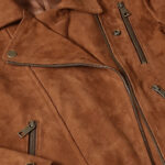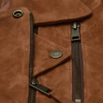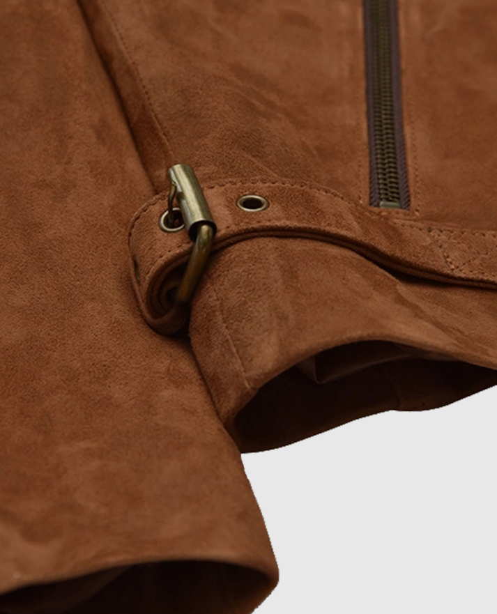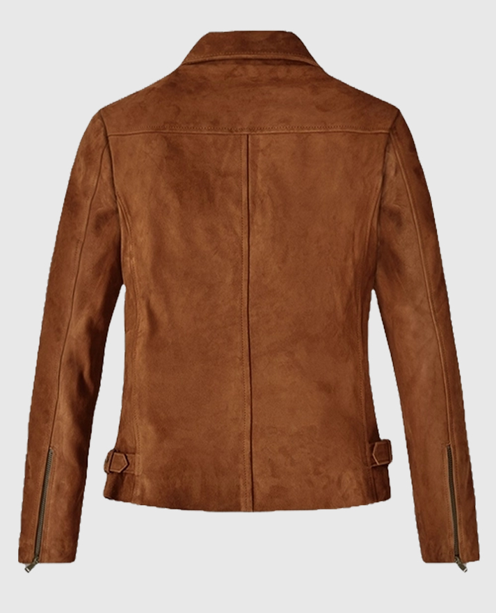 Ready to turn heads with fearless flair This tan-brown suede leather jacket is a bold statement piece inspired by Vanessa Hudgens, known for her effortlessly cool style. She famously wore this chic number at the World Premiere of ‘World of Color’ and even brought the same energy to Jennifer Tisdale’s baby shower proving it works for glam events and laid-back moments. It is made from soft suede leather and features an asymmetrical zipper closure, a wide lapel collar, full-length sleeves with zipper cuffs, and three stylish external zipper pockets. Whether you’re going out or dressing to impress, this jacket adds a fearless, fashion-forward touch.