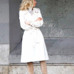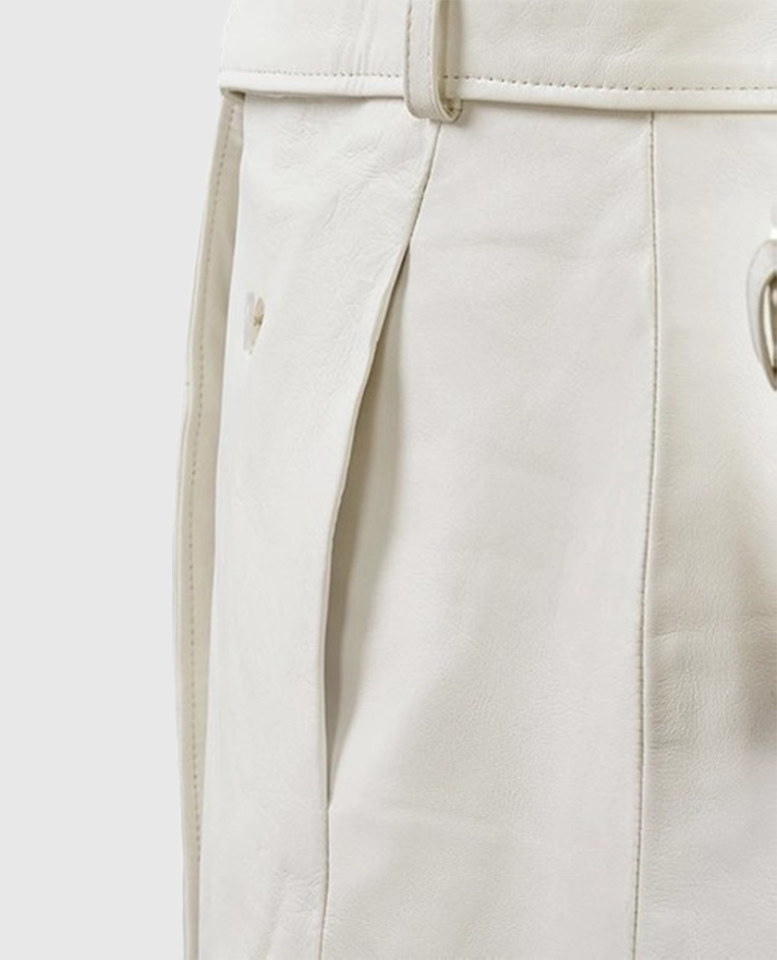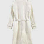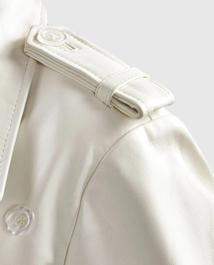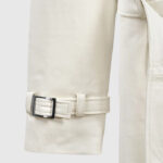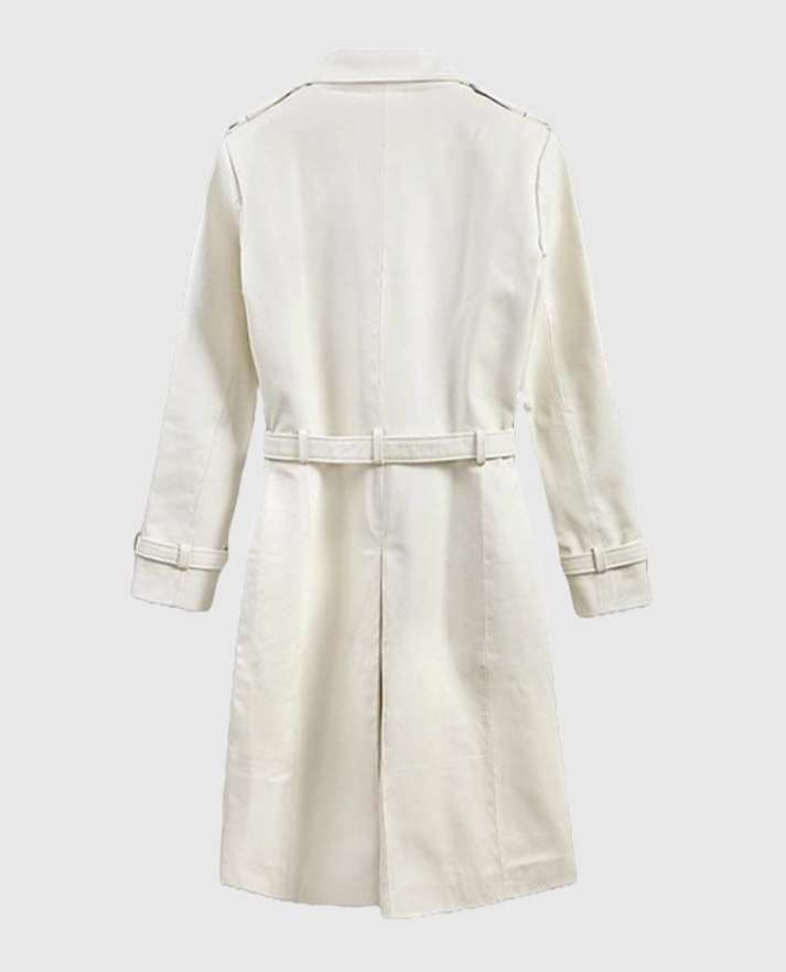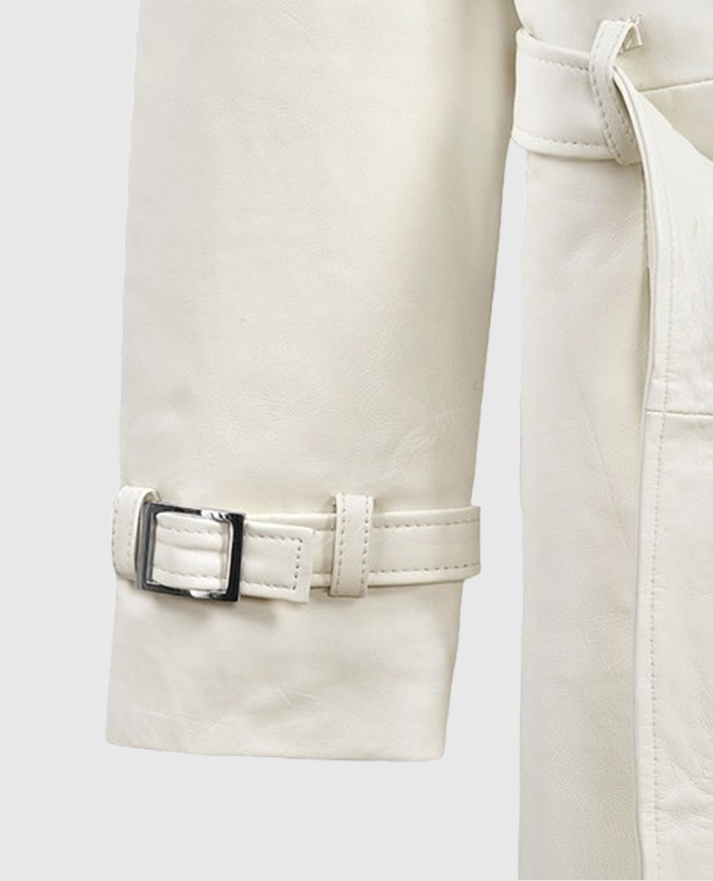 This coat is inspired by the iconic Alanna Mitsopolis character from the blockbuster movie Mission Impossible: Fallout, portrayed by Vanessa Kirby. A masterpiece of elegance and sophistication, it’s crafted from premium sheepskin leather for unmatched durability and a luxurious feel. The off-white color exudes timeless charm, while the wide lapel collar and double-breasted button-over-belt closure make it a true fashion statement. Belt-style cuffs and long sleeves add a refined touch, and the adjustable waist belt ensures a perfect fit.