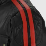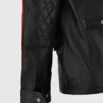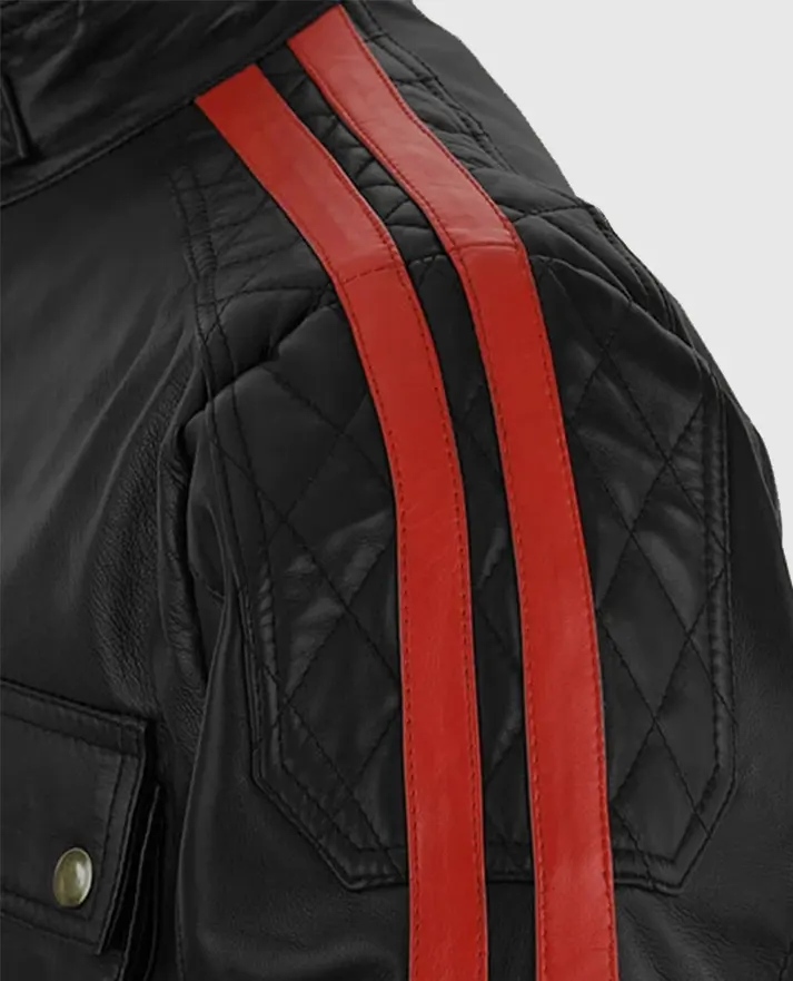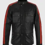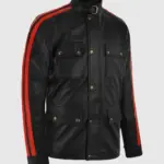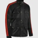The Dominic Toretto Fast & Furious 8 Premiere jacket is inspired from Vin Diesel wore at the German premiere of Fast & Furious 8. Crafted from premium sheepskin leather with a soft viscose lining, it features a zipper closure with a buttoned storm flap, a stand-up collar, full-length sleeves with button cuffs, and four outer pockets. The bold red stripe detailing along the sleeves adds a striking contrast, giving it a sporty yet rugged appeal. Available in classic black, this jacket is a must-have for fans of Vin Diesel’s signature style.