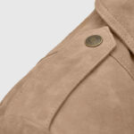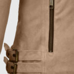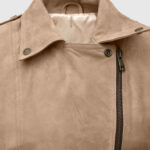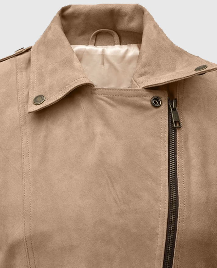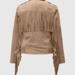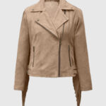 Women’s Dusty Beige Fringe Style Biker Suede Leather Jacket