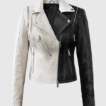 Moto Twister Black and Off-White Biker Leather Jacket for Women