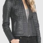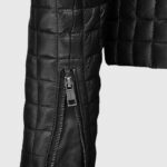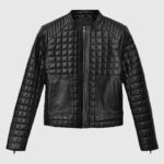 This Women’s Quilted Black Leather Jacket is all about attitude with an edge. Designed in buttery-soft sheepskin leather and features a bold quilted pattern that wraps around the body and sleeves like armor. The sleek round collar, sharp zipper cuffs, and a full front zip closure add to its fierce, fashion-forward silhouette. Two streamlined waist pockets keep things practical. Whether you’re riding into the city or owning the sidewalk, this jacket gives you all-day protection and comfort.