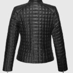 Collar Less Quilted Black Leather Jacket for Women