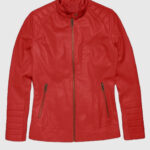 Red Cafe Racer Leather Jacket for Women