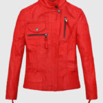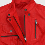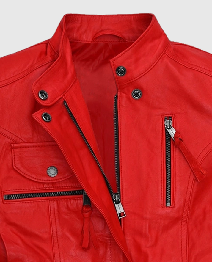 Rev up your wardrobe with the bold energy of the Women’s Lana Blood Red Cafe Racer Leather Jacket. Made from premium sheepskin leather and finished with a washed and waxed texture, this jacket brings a rugged edge to a sleek silhouette. It features a zipper front closure with a snap-tab button collar for a clean racer-style look. Designed with full-length sleeves, zipper cuffs with pullers, and five practical external pockets, it blends functionality with fierce street style. The vibrant blood red color adds a fearless pop to any outfit, whether you’re riding or just turning heads.