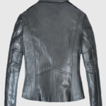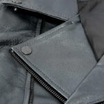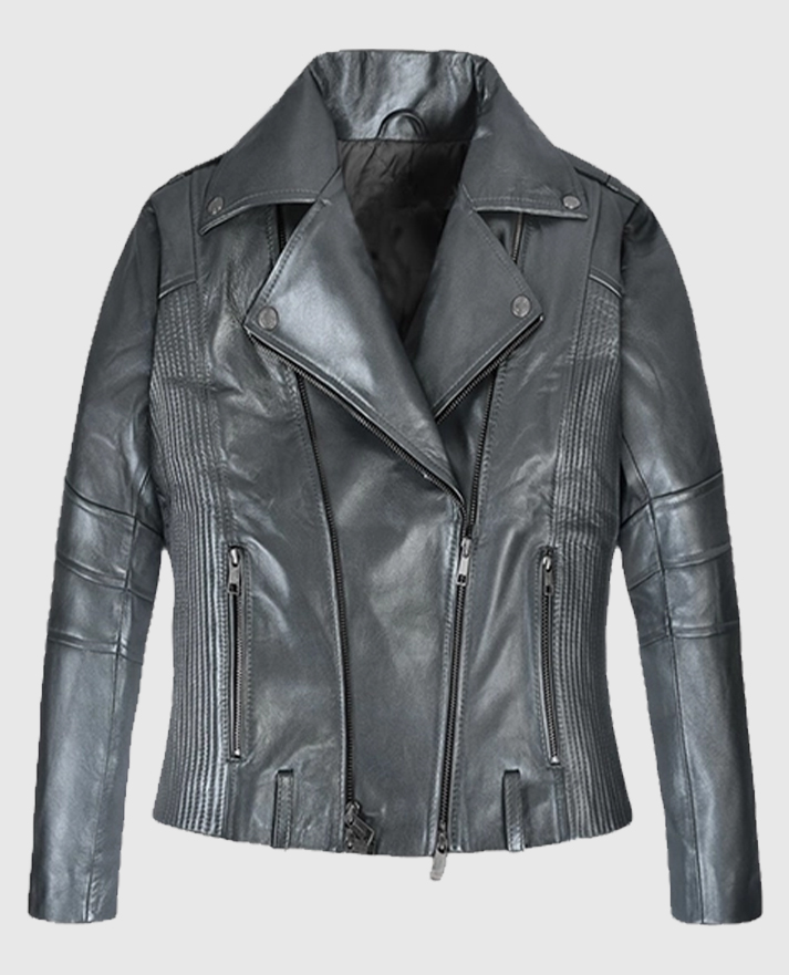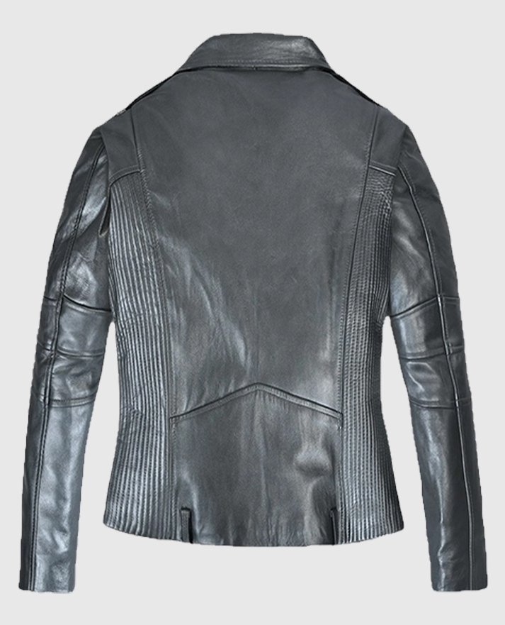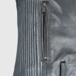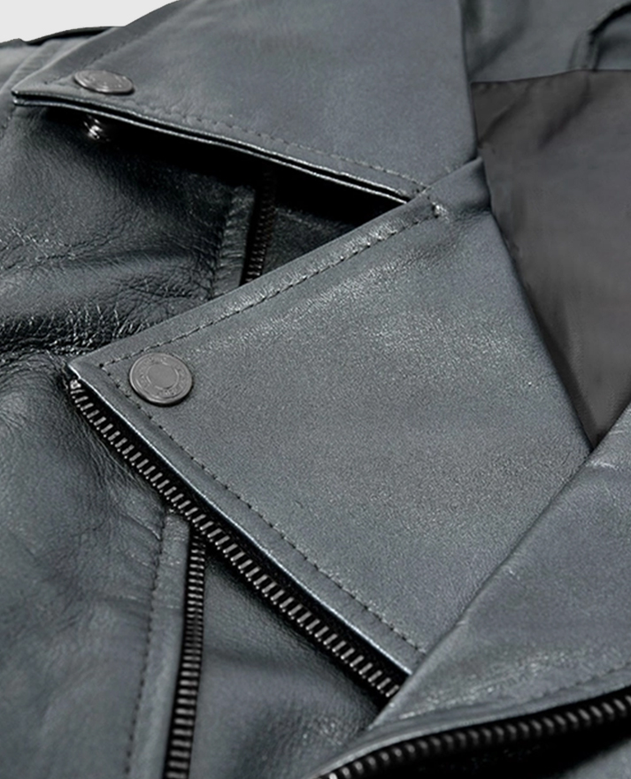 Make a bold entrance with the Women’s Silver Biker Leather Jacket, a fierce and fashionable piece in sleek silver sheepskin leather. Designed with an asymmetrical front zipper and wide-notch lapel collar. This jacket captures the essence of classic moto styling with a modern metallic twist. The soft viscose lining ensures day-long comfort, while the two zippered waist pockets add both edge and utility. Intricate stitching along the sides enhances its fitted silhouette, giving you a flattering shape. Perfect for parties, club nights, concerts, or any event where you want to stand out.