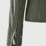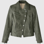 Minimalist charm meets rugged edge in the vintage Italian olive suede leather jacket. Crafted from soft suede leather in a rich olive hue, this jacket brings a sophisticated yet adventurous feel to any outfit. Its standout features The unique asymmetrical button closure adds a modern twist to the classic biker cut. A shirt-style collar and full-length sleeves with zip cuffs and snap tab detail give it a clean silhouette. With three sleek external pockets and a smooth viscose lining for comfort, it’s perfect for layering over everything from casual denim to tailored fits.