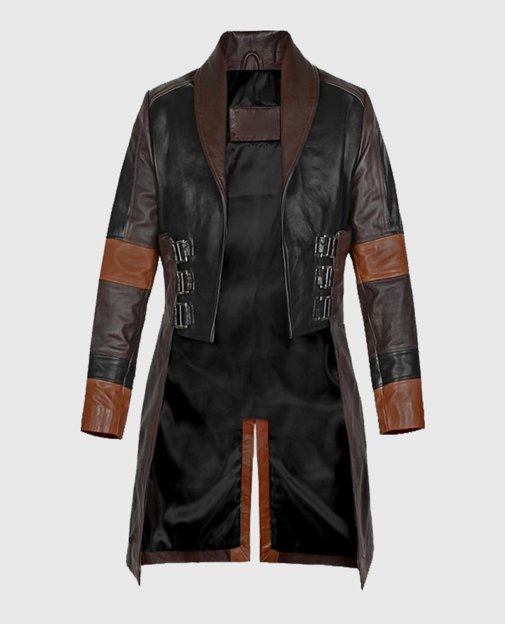 Ready to channel your inner Gamora? This bold leather coat, inspired by Zoe Saldana’s iconic role in Guardians of the Galaxy Vol. 2, is your ticket to making a powerful style statement. Crafted from real sheepskin leather, it features a lapel-style collar, long sleeves with round cuffs, and an open front design for a sleek, modern look. The black and brown color scheme adds a touch of sophistication, making it perfect for standing out at any event. Whether you’re embracing Gamora’s fierce vibe or looking for a standout piece, this leather coat is a must-have for women who want to make their presence unforgettable.
